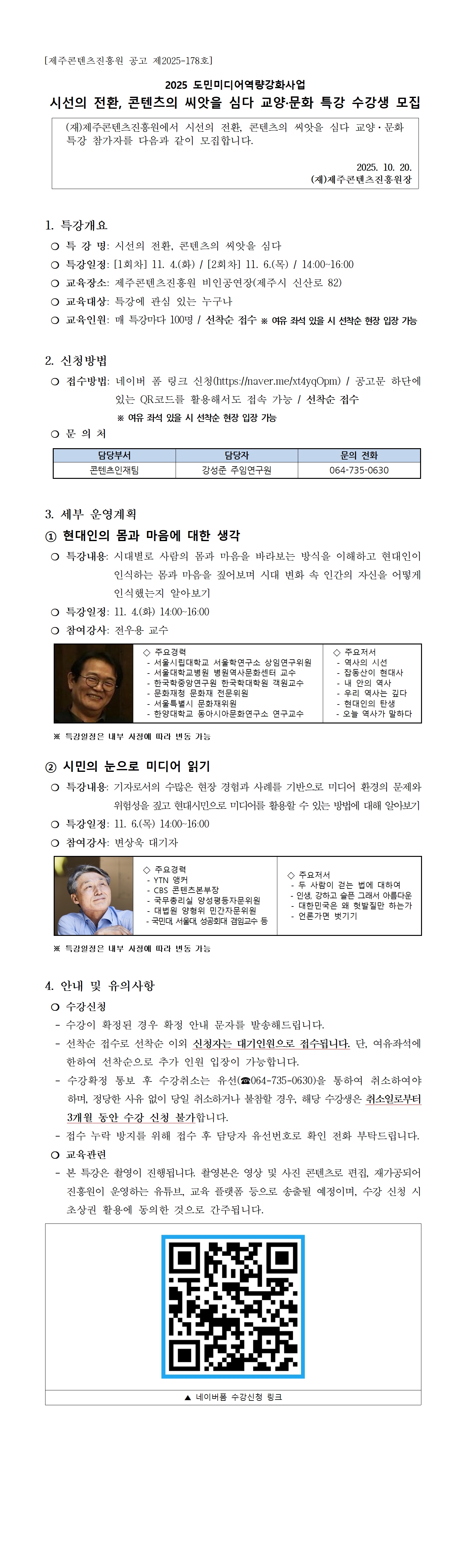 신청중 시선의 전환, 콘텐츠의 씨앗을 심다 교양 문화 특강