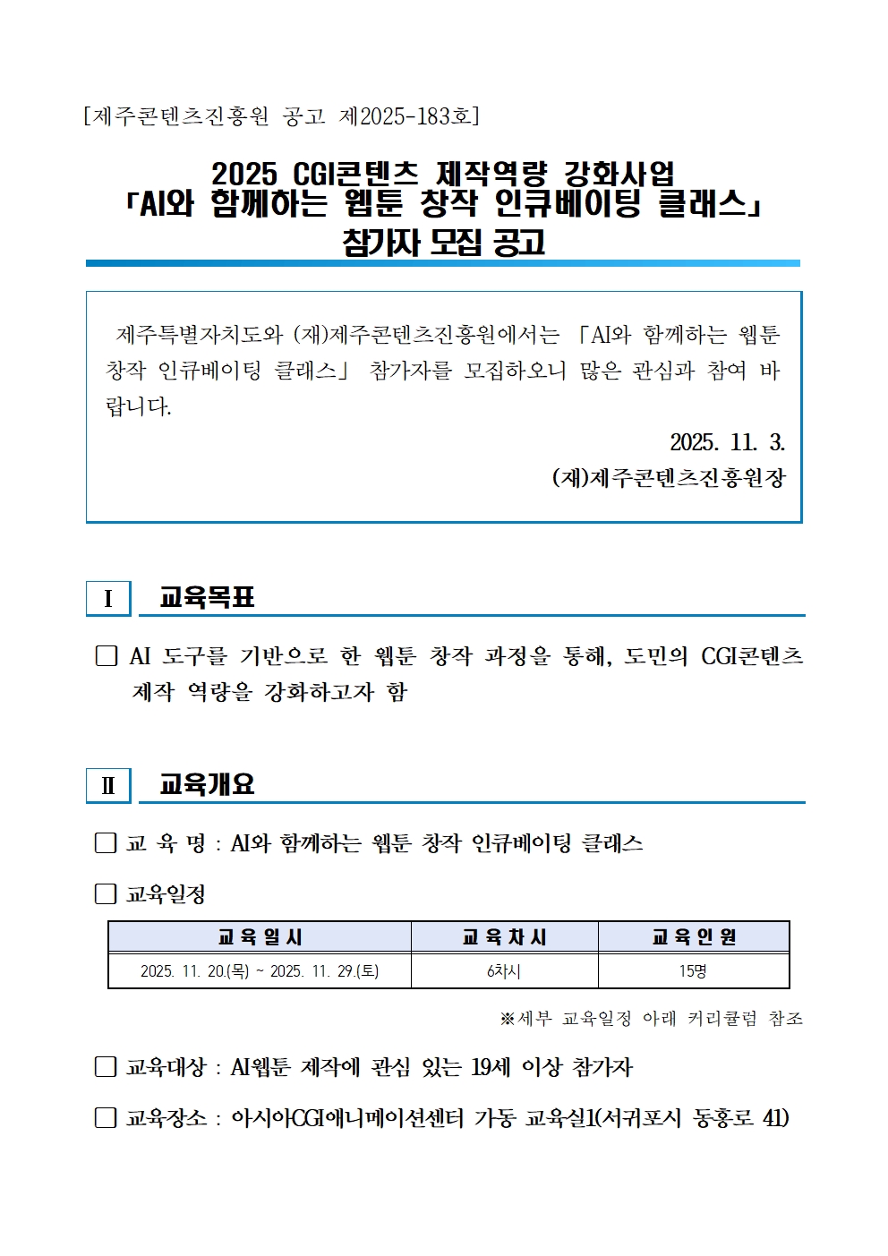 신청중 2025 CGI콘텐츠 제작역량 강화사업 AI와 함께하는 웹툰 창작 인큐베이팅 클래스