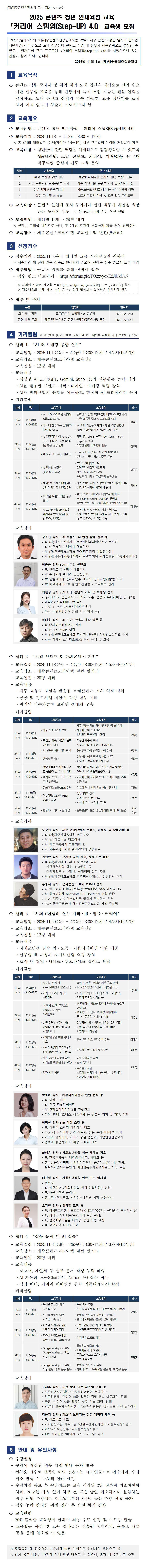 신청중 2025 콘텐츠 청년 인재육성 교육 「커리어 스텝업(Step-UP) 4.0」 교육생 모집