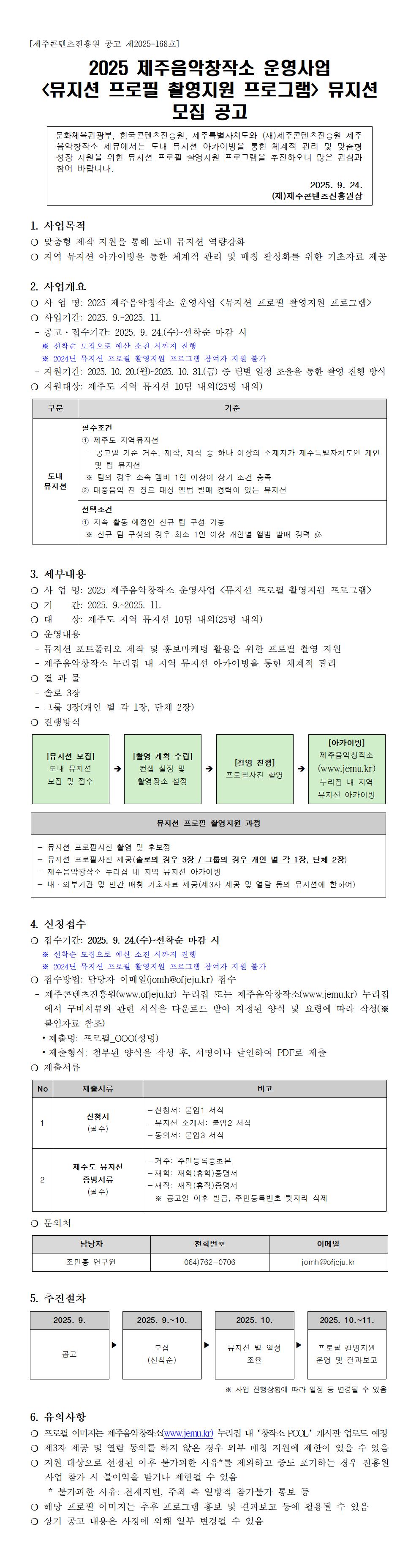 신청중 2025 제주음악창작소 운영사업 <뮤지션 프로필 촬영지원 프로그램> 뮤지션 모집 공고