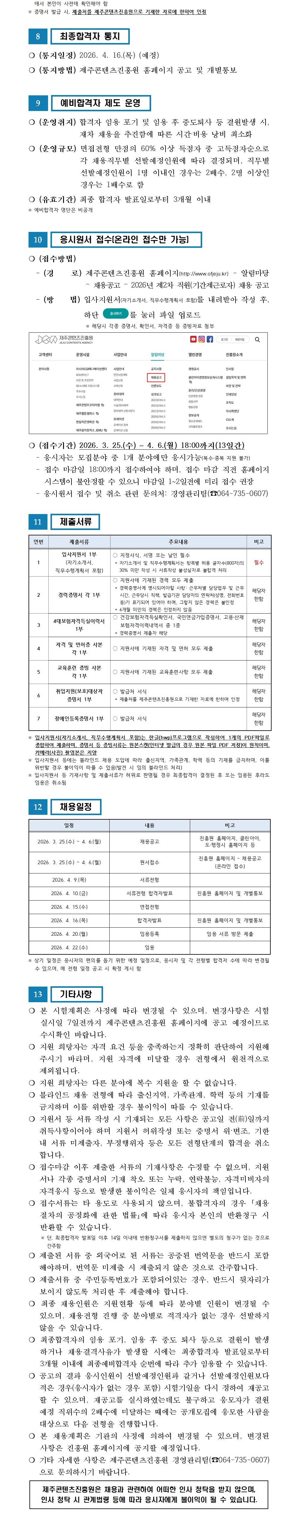 재단법인 제주콘텐츠진흥원 2026년 제1차 직원(기간제근로자) 채용 서류전형 합격자 ..