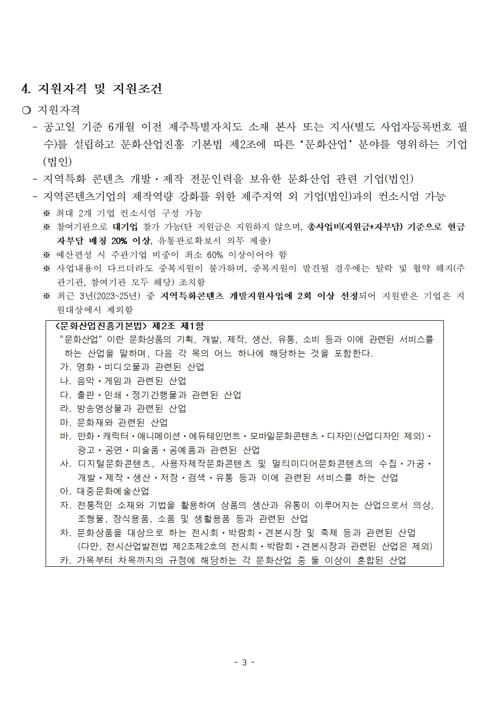 2026 제주형 융복합 문화콘텐츠 상품제작 지원사업 공고(수정)..