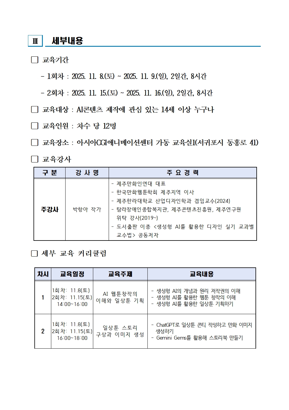 2025 CGI콘텐츠 제작역량 강화사업 「AI로 그리는 재주(제주) 많은 일상웹툰 제작 교..