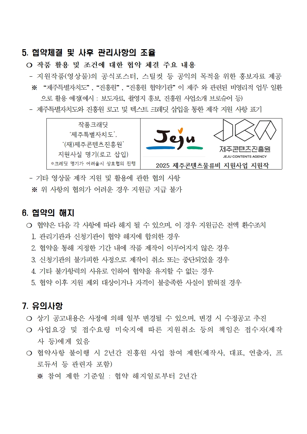 『2025 하반기 제주 로케이션 영상물 제작비 지원 사업』 공고..