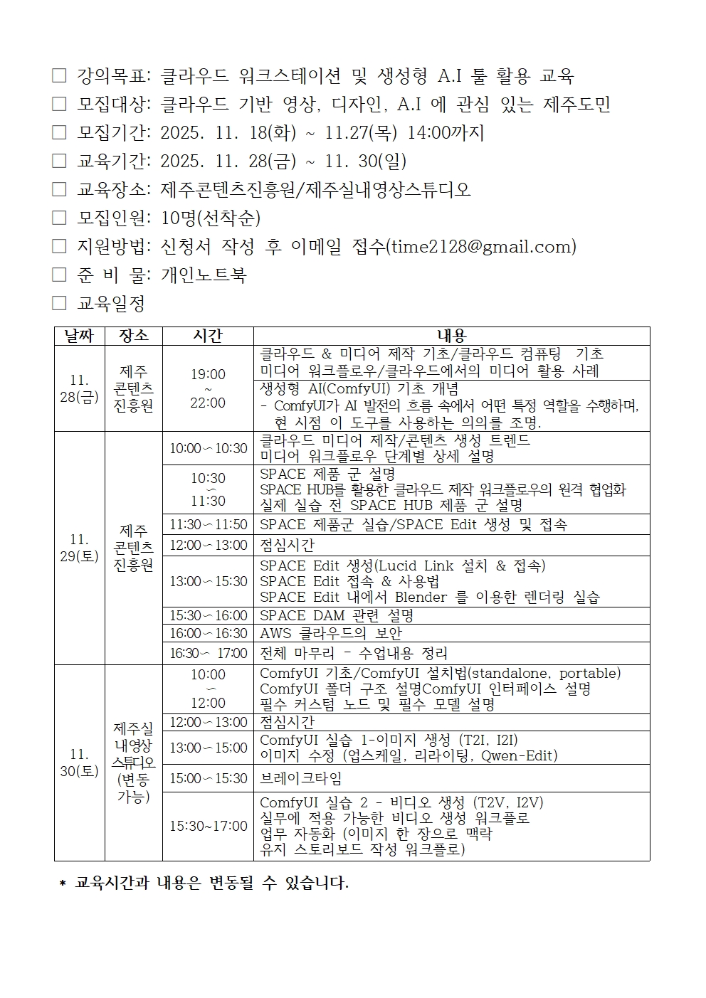 2025 CGI콘텐츠 제작역량 강화사업 「AI로 그리는 재주(제주) 많은 일상웹툰 제작 교..