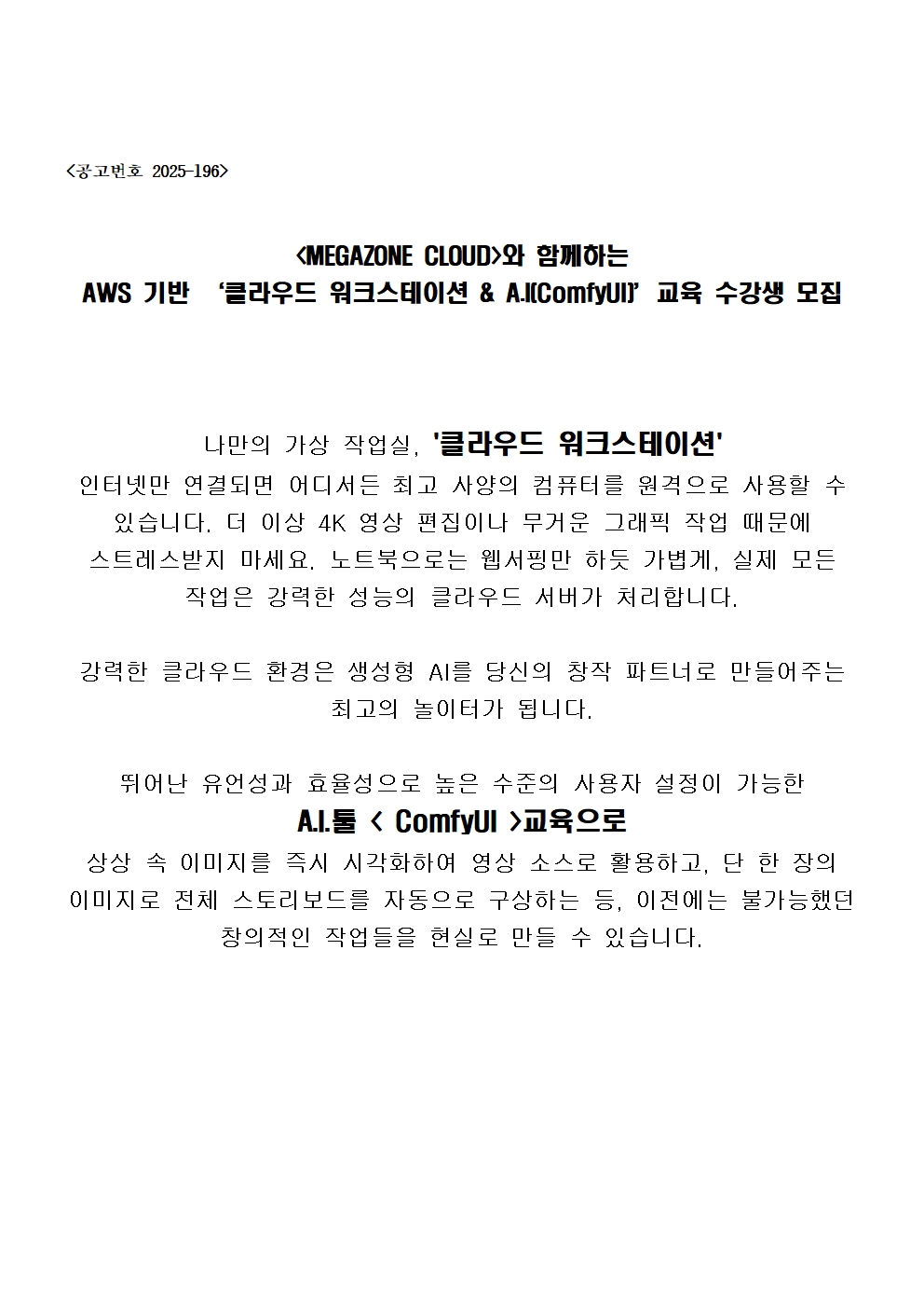 [교육공고] AWS 기반 ‘클라우드 워크스테이션 & A.I(ComfyUI)’교육 수강생 모집..