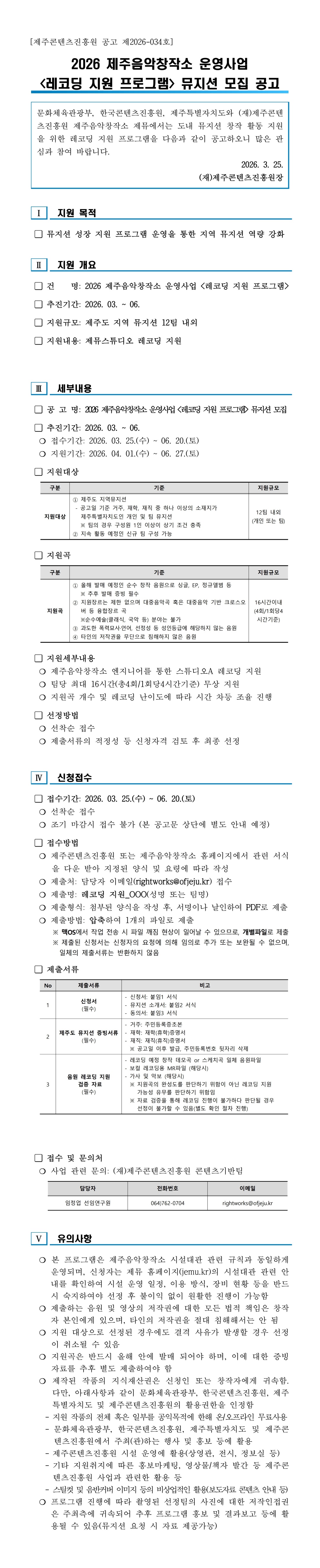 2026 제주음악창작소 운영사업 <레코딩 지원 프로그램> 뮤지션 ..