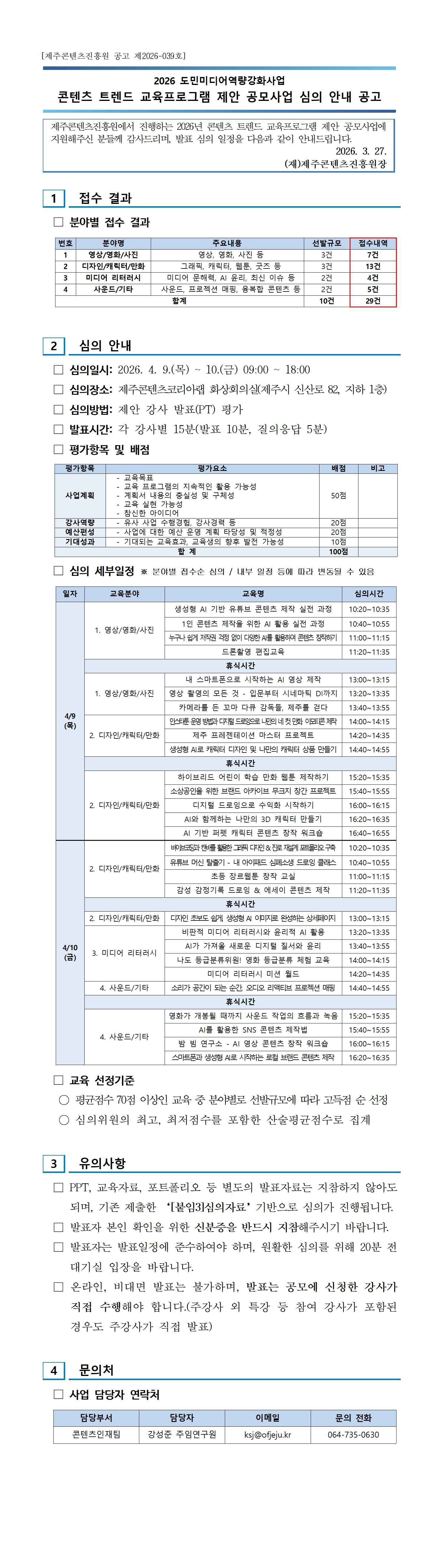 2026 제주다양성영화 제작지원 사업 면접평가 안내 공고 ..