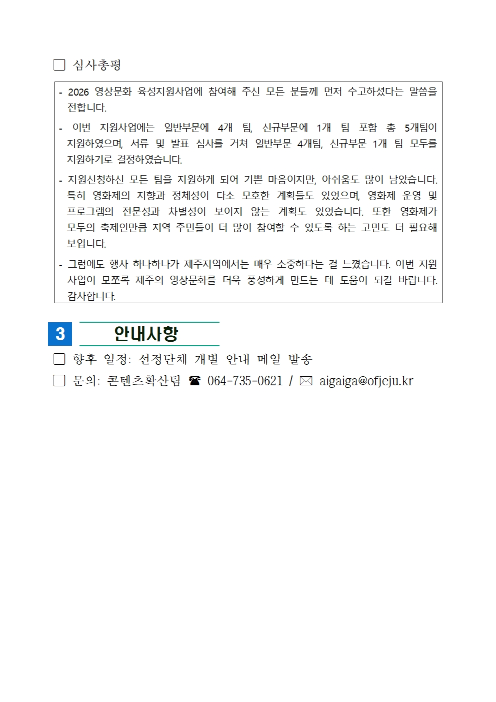 2026 영상문화 육성지원 사업 선정평가 결과 공고..