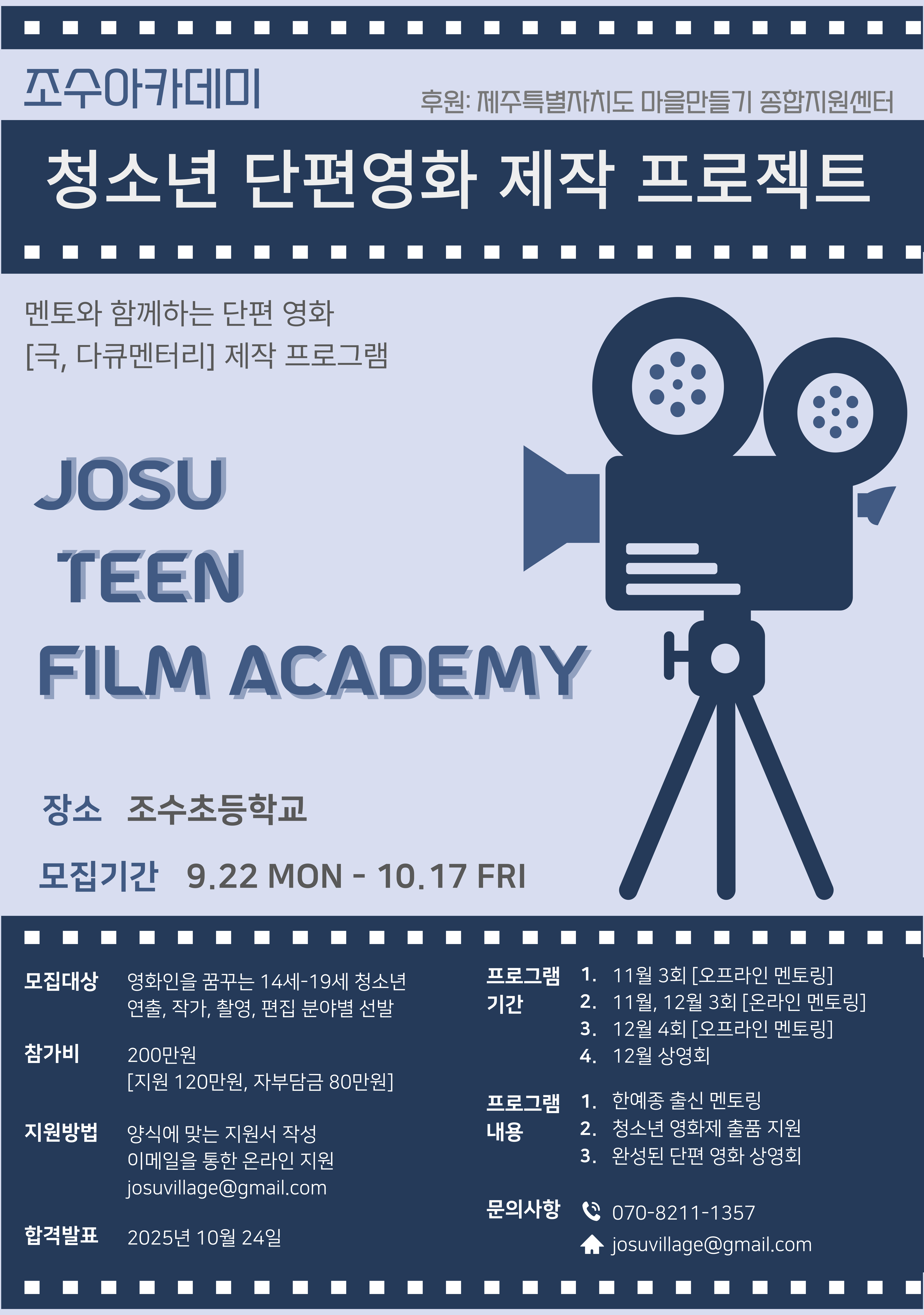 조수아카데미 청소년 단편영화 제작 프로젝트후원: 제주특별자치도 마을만들기 종합지원센터