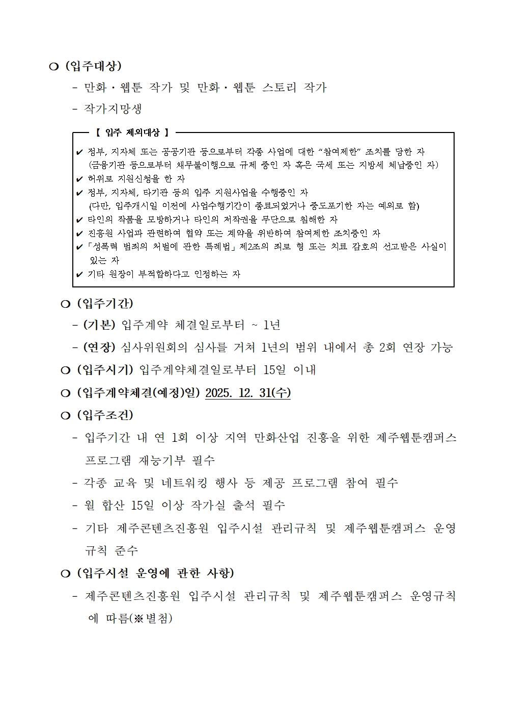 2025 제주웹툰캠퍼스 웹툰창작작가실 입주작가 모집 시행(3차)..
