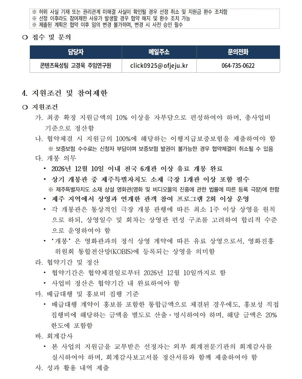 2026 제주다양성영화 유통·배급 지원사업 공고
