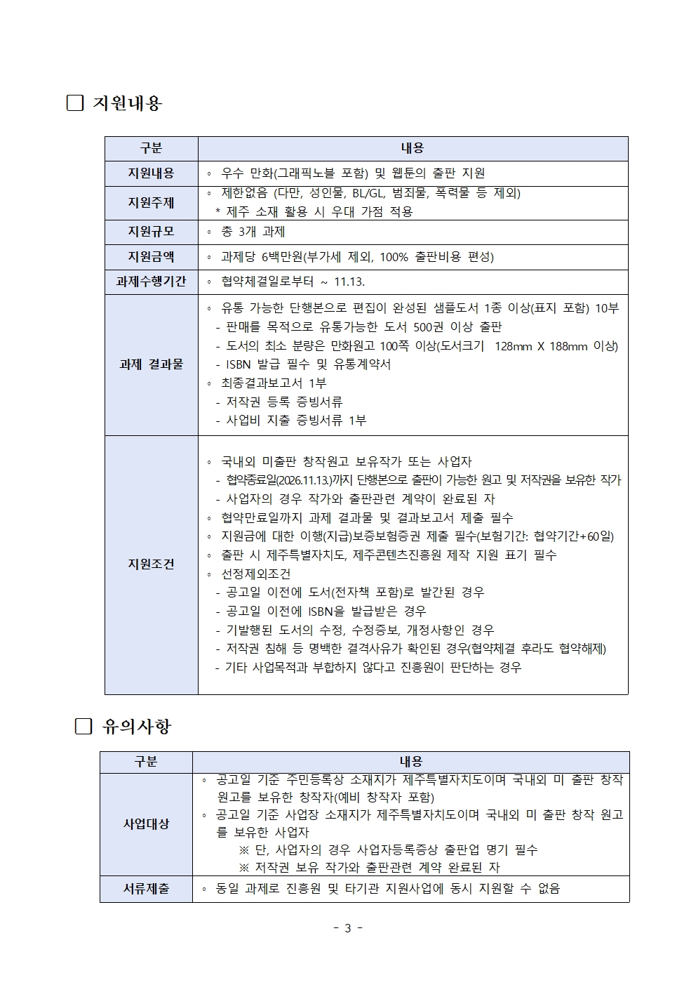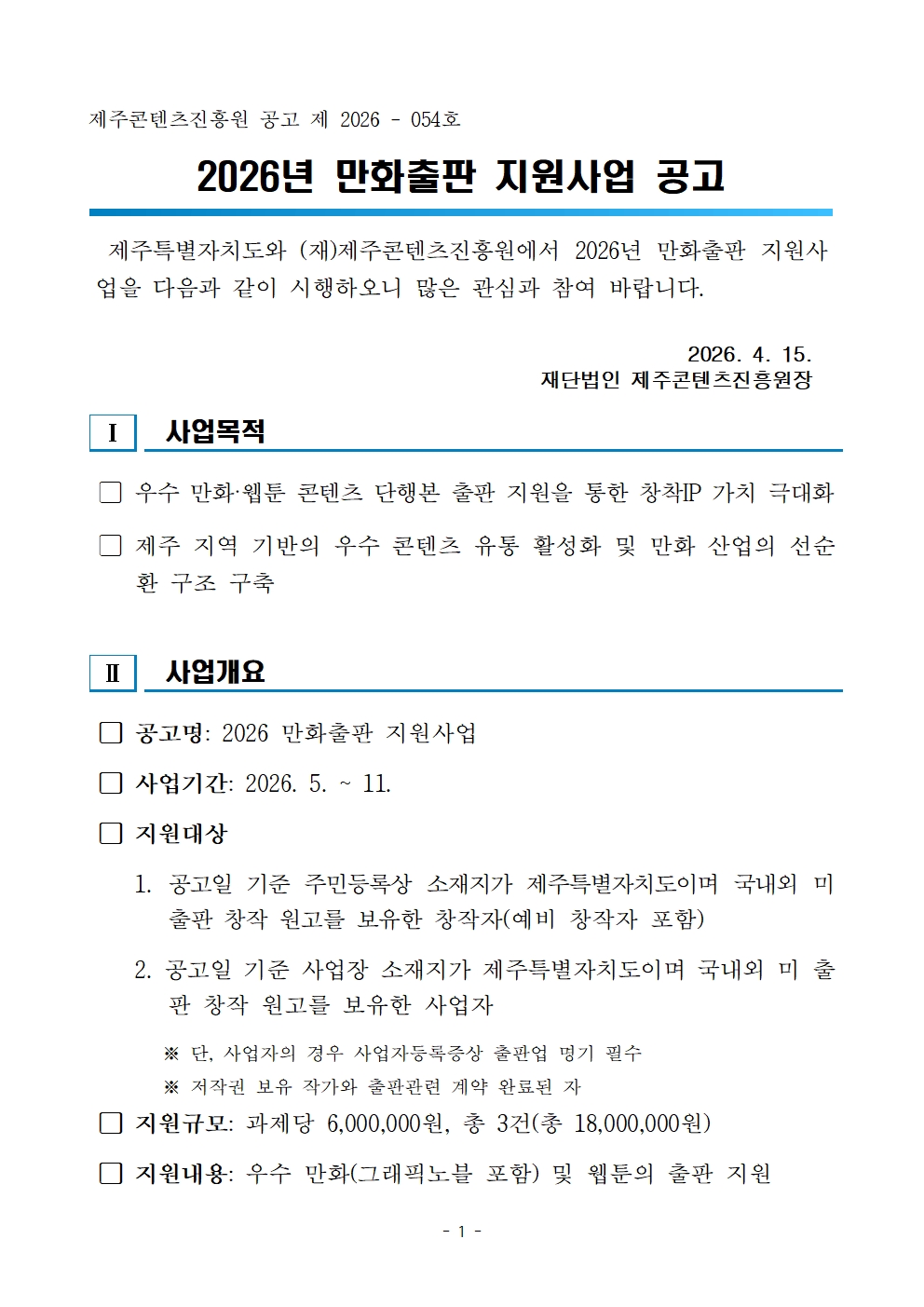 2026 제주관광 콘텐츠 프로젝트 지원사업 모집공고