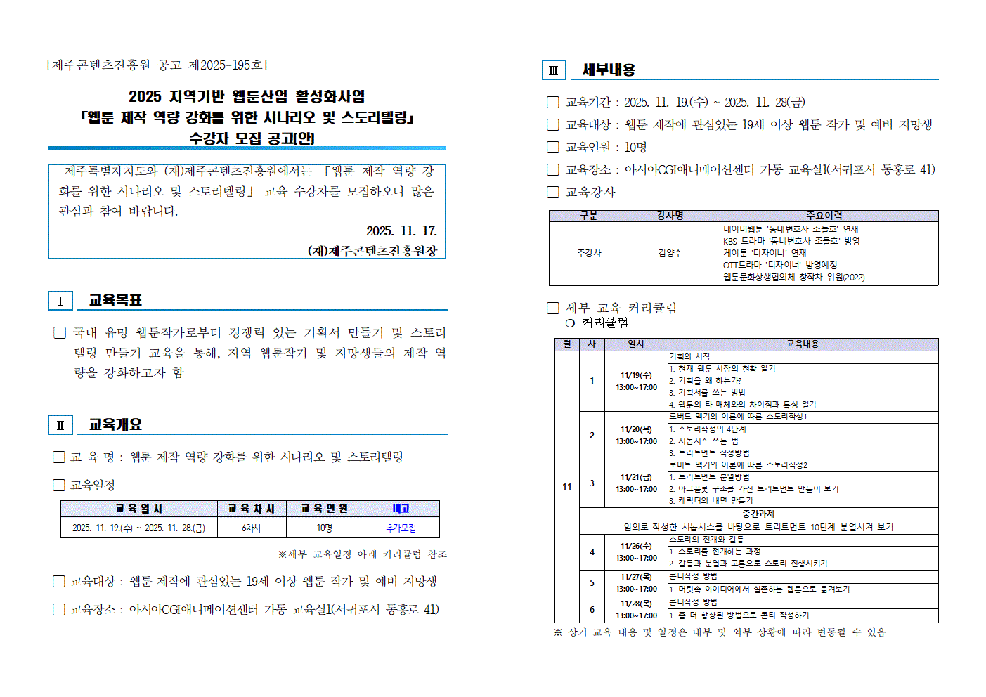 [교육공고] 2025 웹툰 제작 역량 강화를 위한 시나리오 및 스토리텔링 수강자 모집 ..
