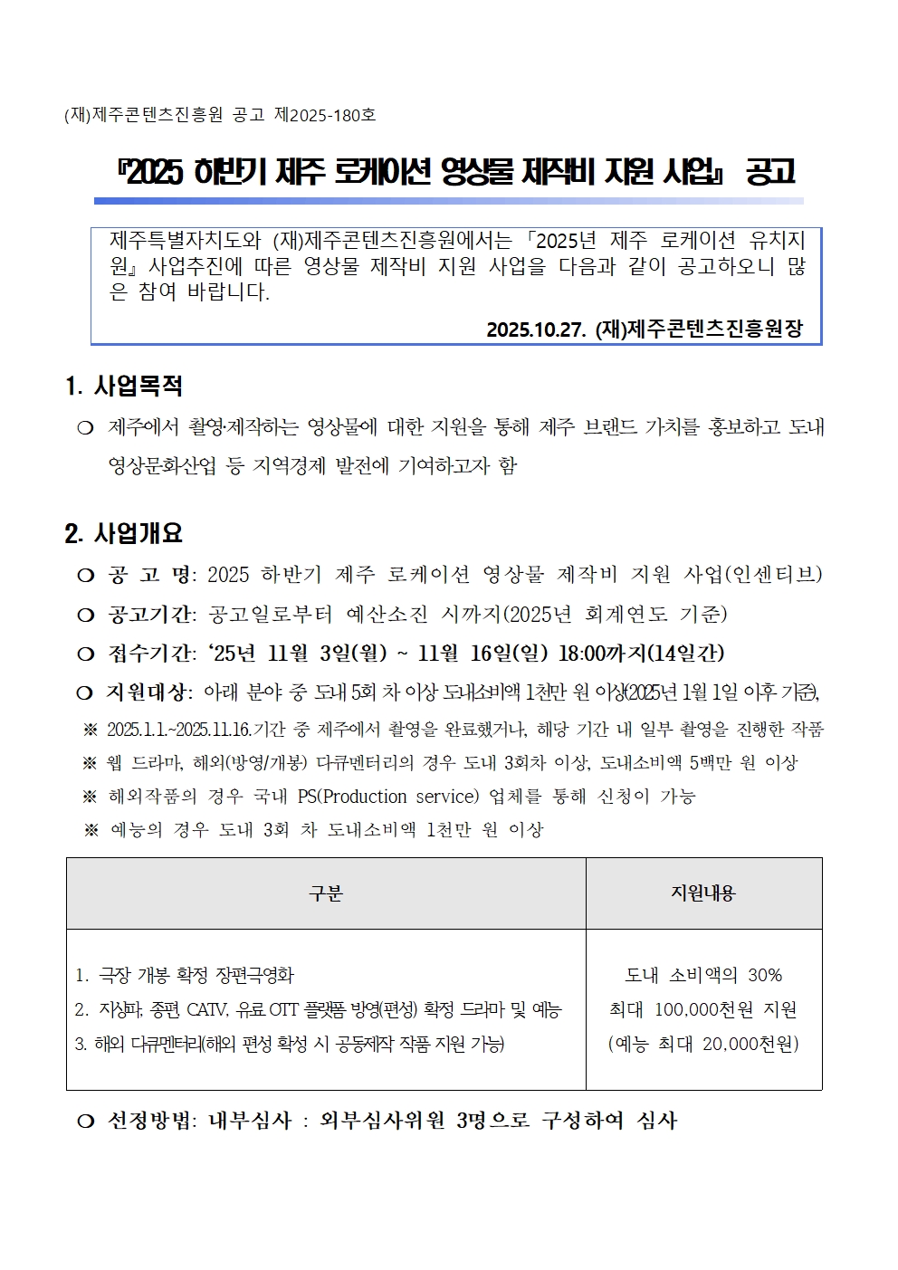 [결과공고] 2020 제주형 융복합 문화콘텐츠상품 제작지원사업 선..