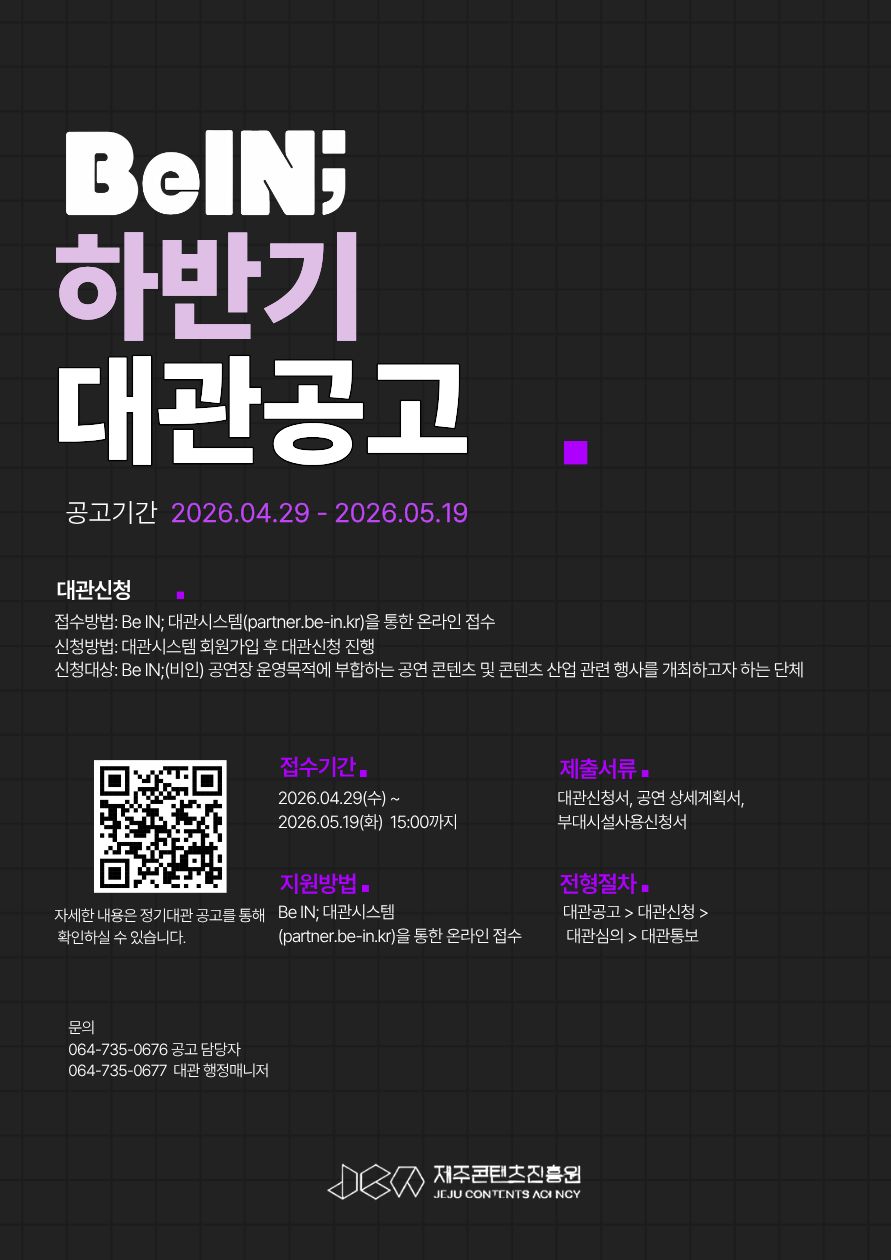 | [ 기관공고 ] 2026년 Be IN;(비인) 하반기 정기대관 공고 | |||