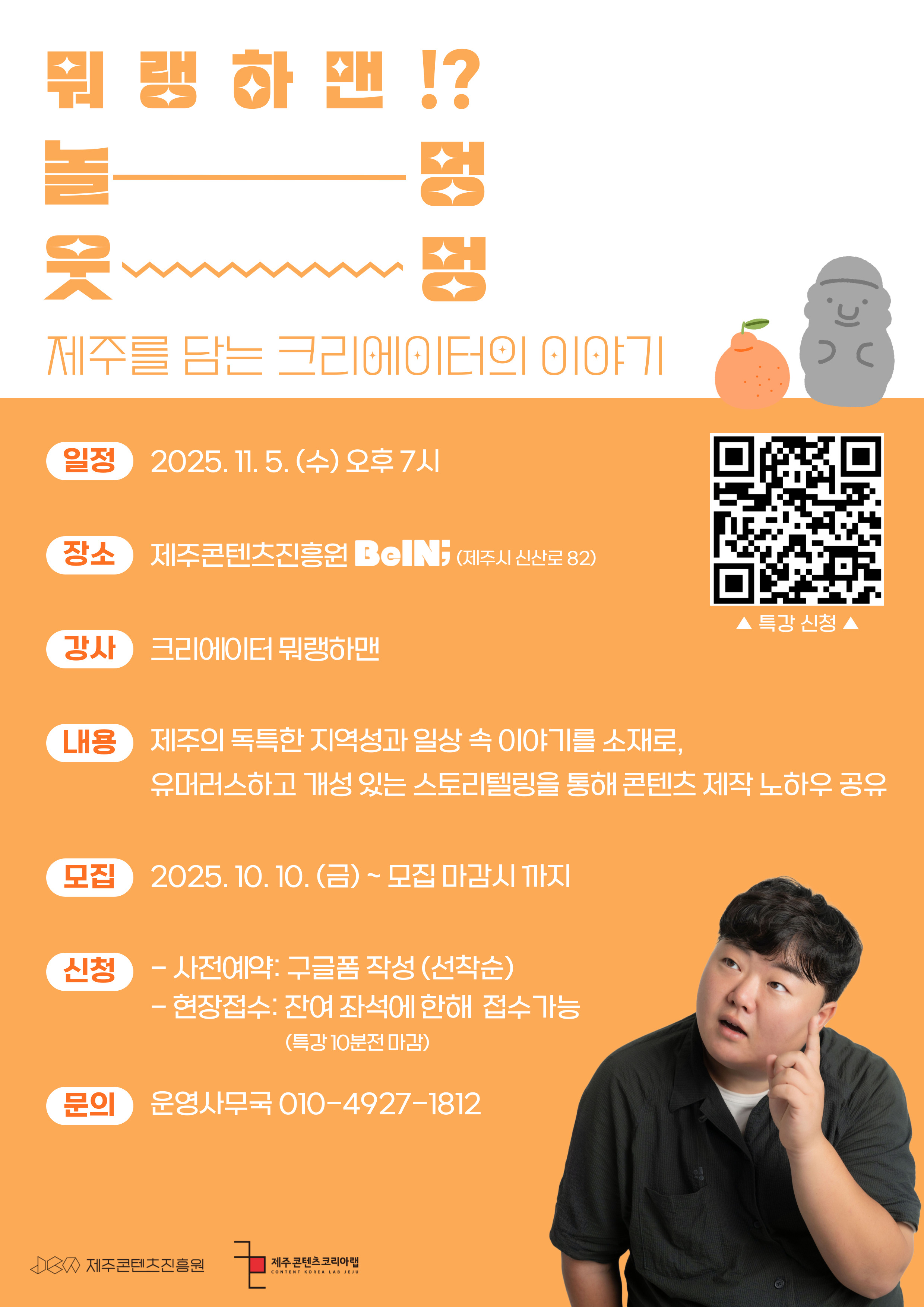 신청중 2025 JEMI아카데미 특강 놀멍 웃멍, 제주를 담는 크리에이터의 이야기