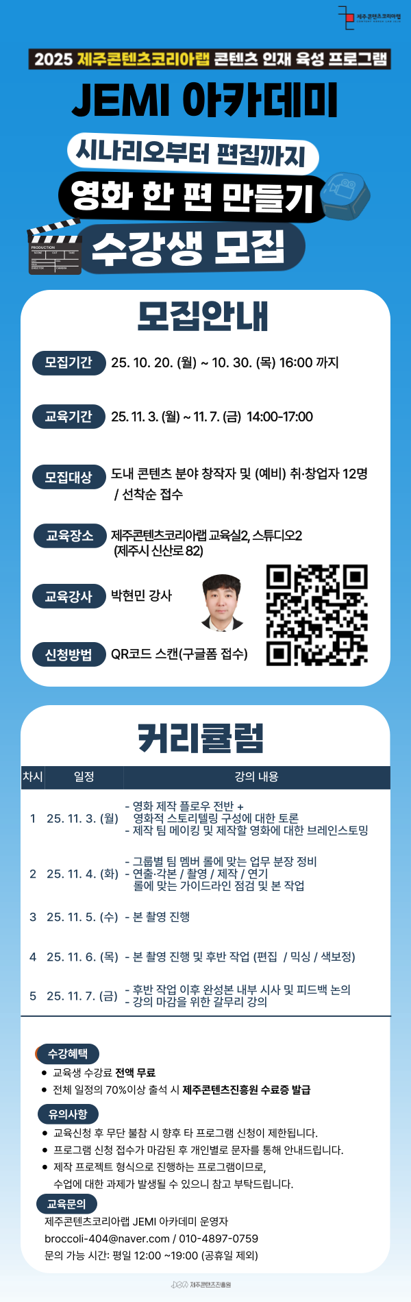 대기중 2025 JEMI아카데미 시나리오부터 편집까지 영화 한 편 만들기