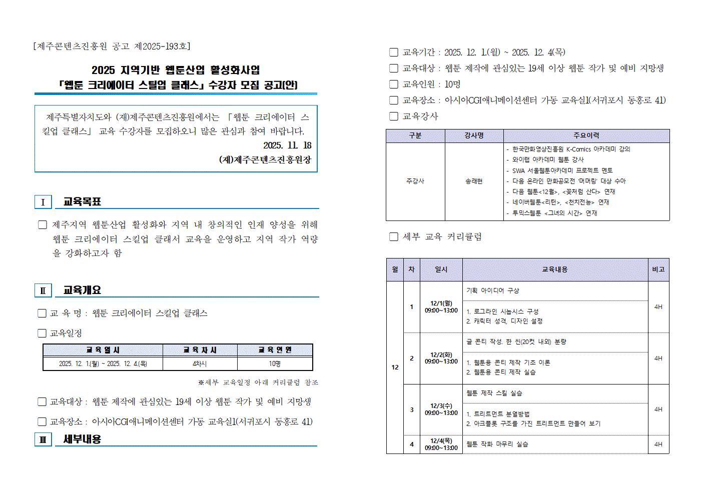 신청마감 2025 웹툰 크리에이터 스킬업 교육