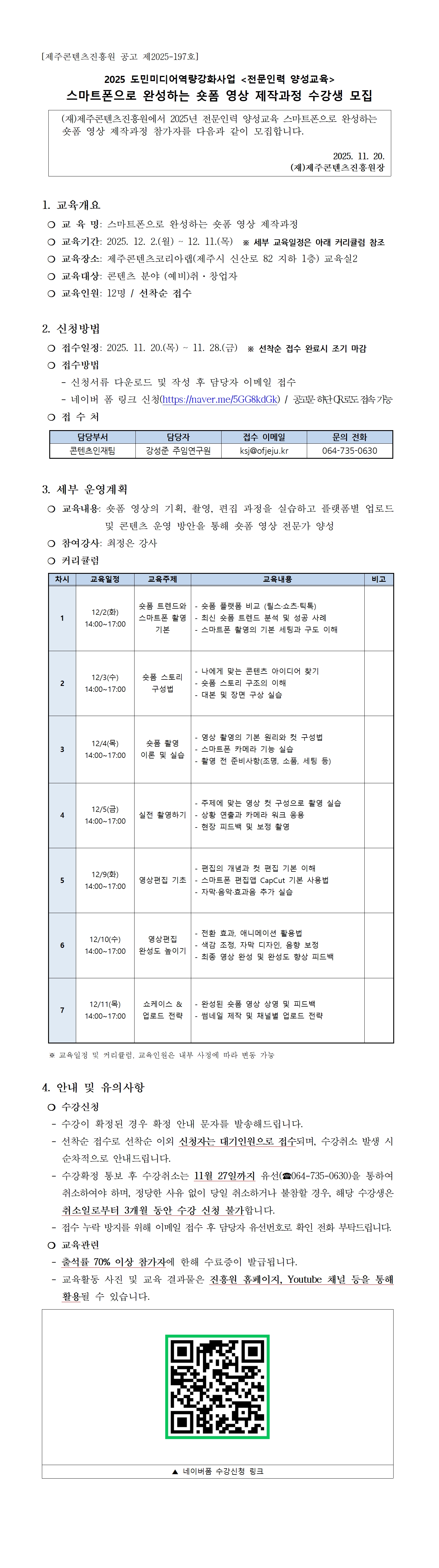 신청마감 스마트폰으로 완성하는 숏폼 영상 제작과정