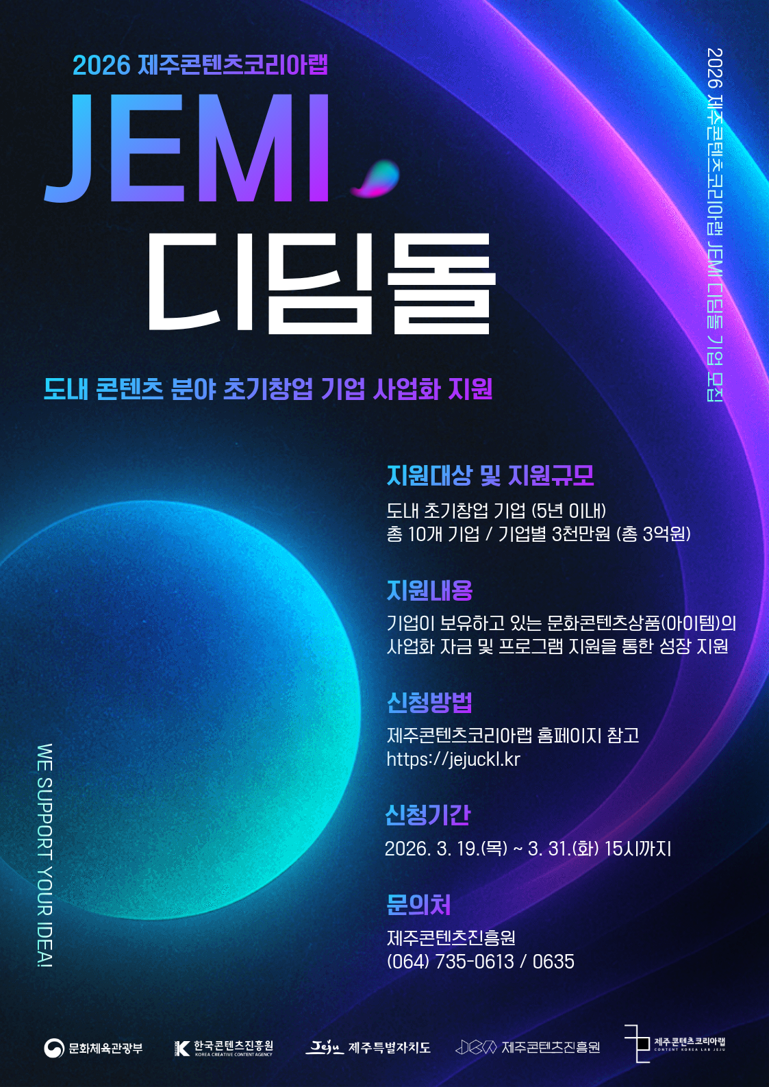 공고중 2026 제주콘텐츠코리아랩 「JEMI 디딤돌」 지원사업 공고