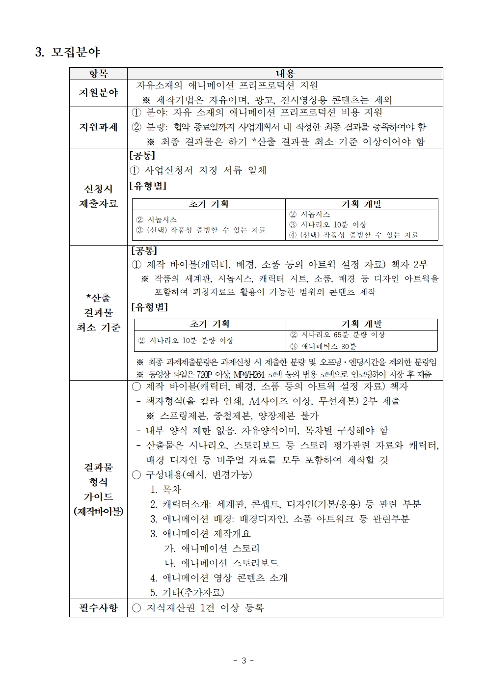 공고중 2026 지역애니메이션 콘텐츠 제작지원사업 기획개발 지원 참여기업 모집 공고