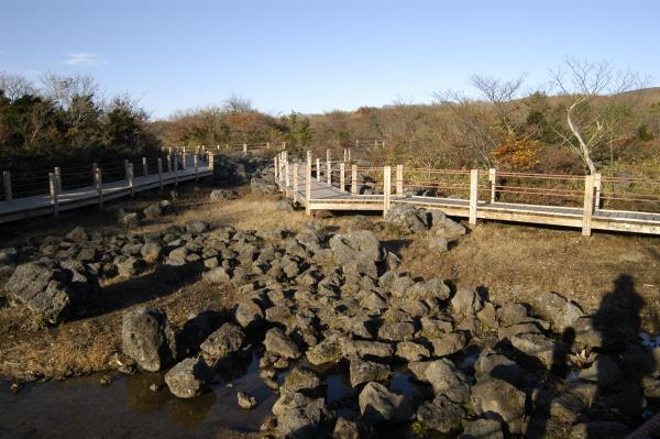 한라산 서쪽 산록을 관통하며 제주시와 중문을 잇는 1100도로의 가장 높은 곳에 위치한 습지로, 2009년 12월 람사르습지로 등록됐다.1100고지 습지는 한라산국립공원과 생물권보전지역 안에 위치해 있으며, 13ha 면적으로 민물성 늪과 식물로 구성돼 생물다양성이 풍부한 고지대 습지로 분류된다. 특히 1100고지습지는 독특하고 희귀한 유형의 습지로 평가받고 있다. 제주에서만 분포하는 한라산 고유식물인 한라물부추은 물론, 한국 고유식물로 멸종위기종 2급인 지리산오갈피가 지리산을 제외하고는 유일하게 분포하고 있는 지역이다. 또 멸종위기 야생동물 1급인 매, 2급인 말똥가리, 조롱이, 천연기념물인 황조롱이, 두견, 제주도 특산종인 제주도롱뇽, 한라북방밑들이메뚜기, 제주밑들이 등이 서식하는 것으로 조사됐다. [시사상식사전]