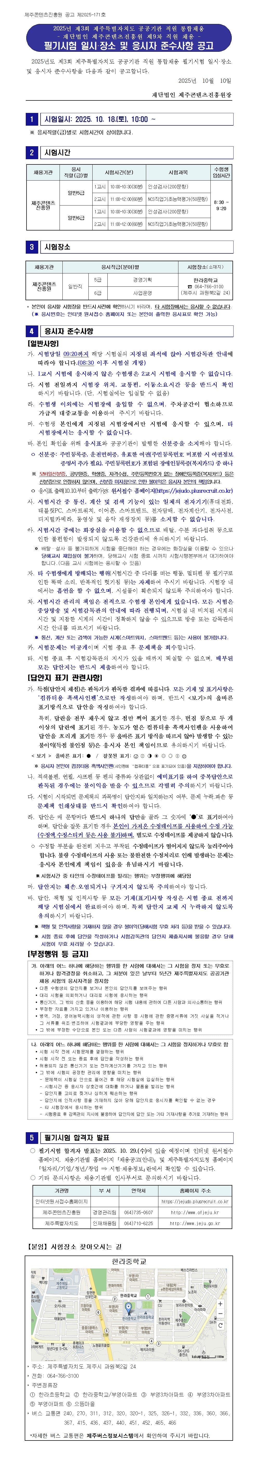 2025년 제2회 제주특별자치도 공공기관 직원 통합채용(제주콘텐츠진흥원 제5차 직원 ..