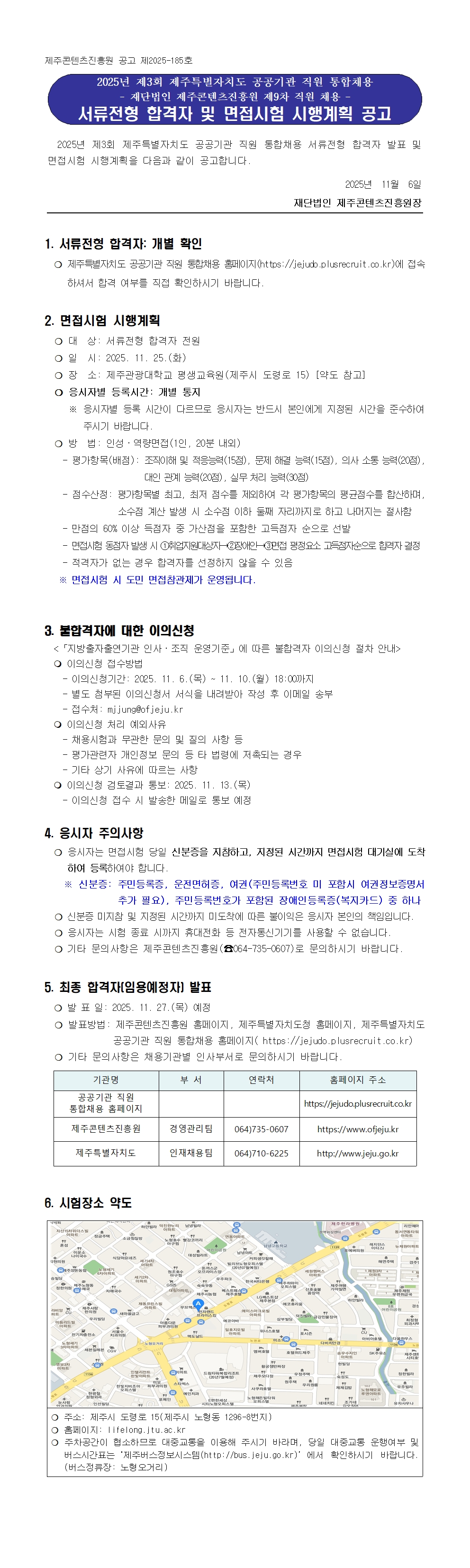 재단법인 제주콘텐츠진흥원 2025년 제7차 직원(기간제근로자) 채용 서류전형 합격자 ..