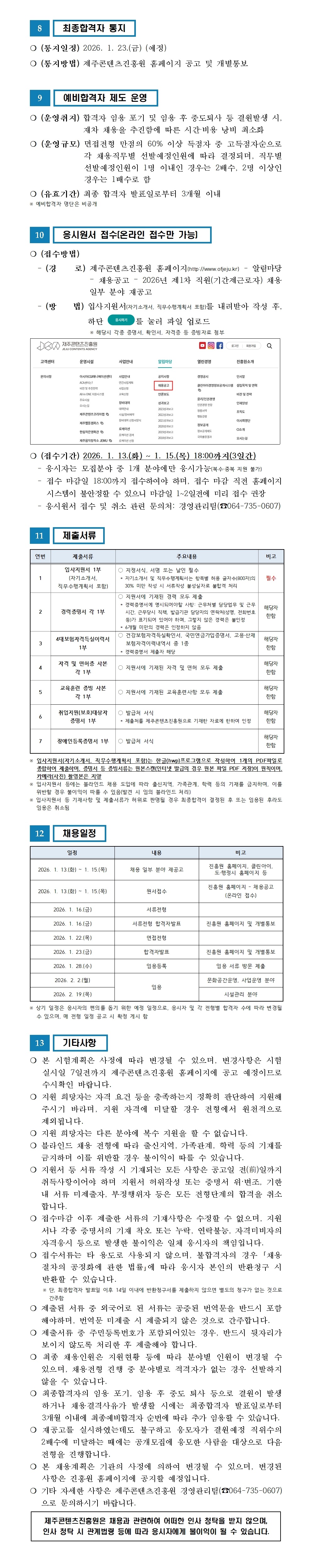 재단법인 제주콘텐츠진흥원 2026년 제1차 직원(기간제근로자) 채용 서류전형 합격자 ..