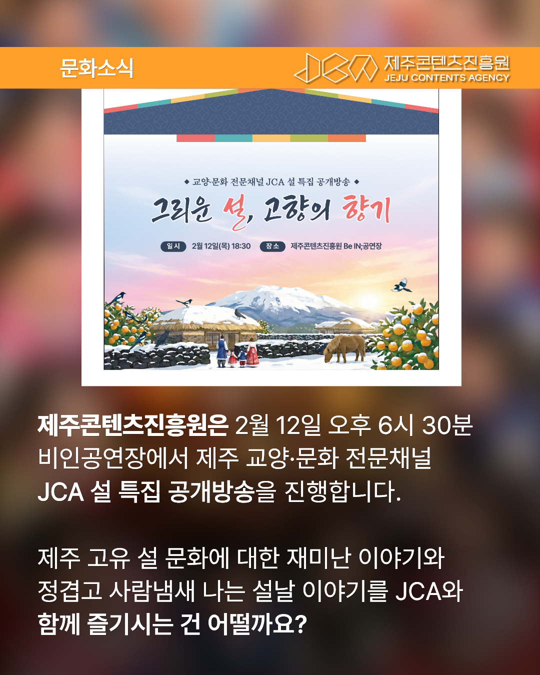 JCA 설 특집 공개방송 '그리운 설, 고향의 향기'..
