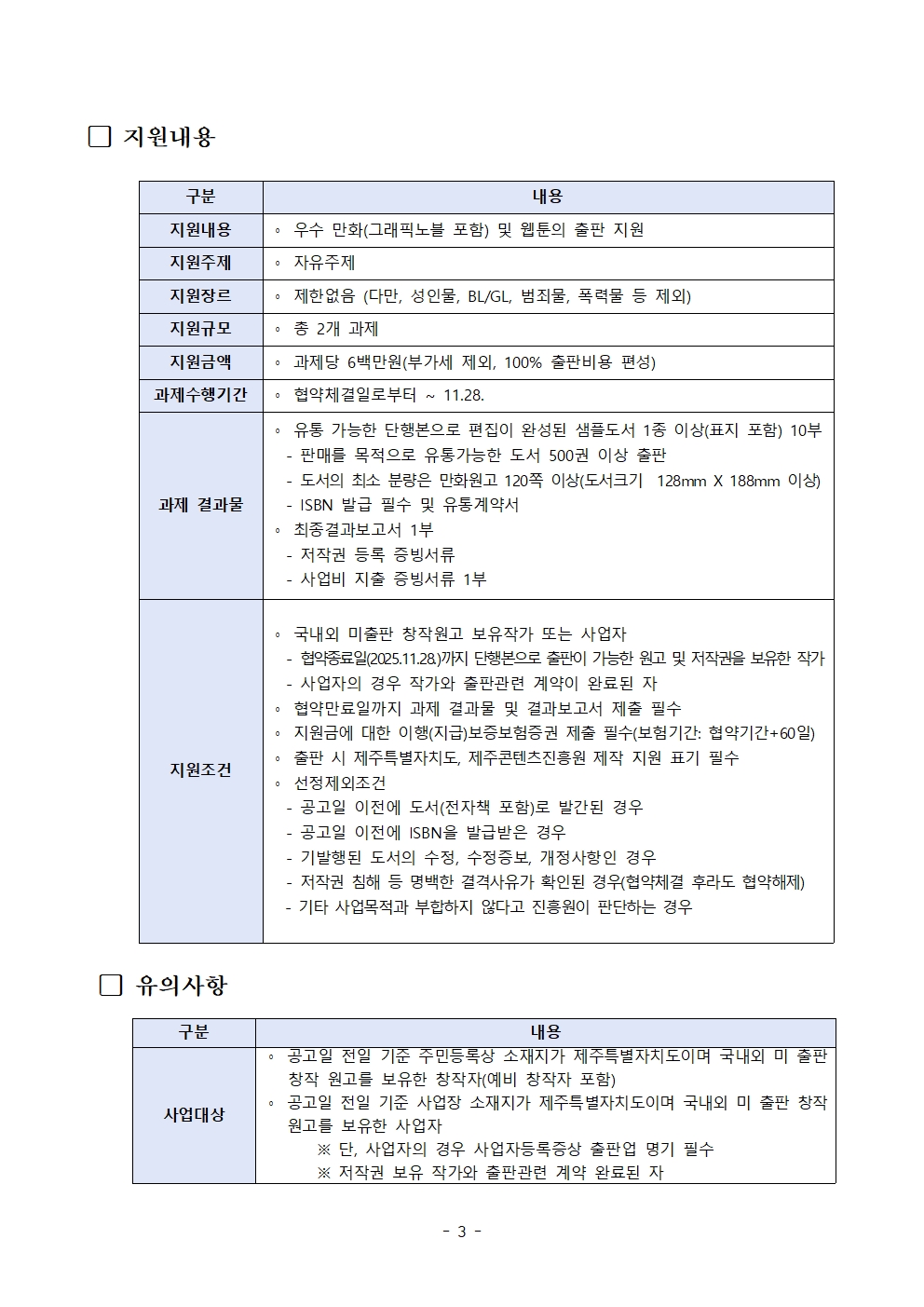 2025년 만화출판 지원사업 공고 게시물 상세보기