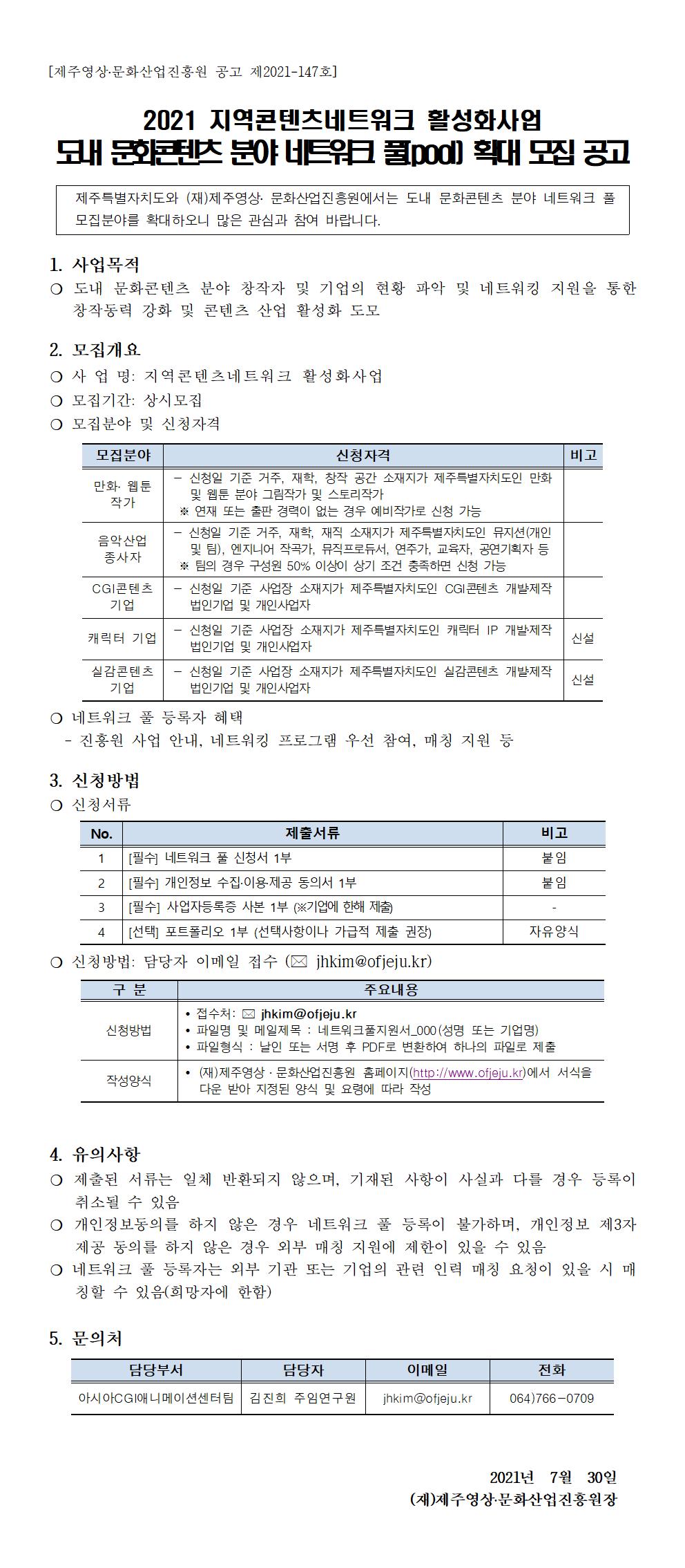 [ ] [상시모집] 도내 문화콘텐츠 분야 네트워크 풀 모집