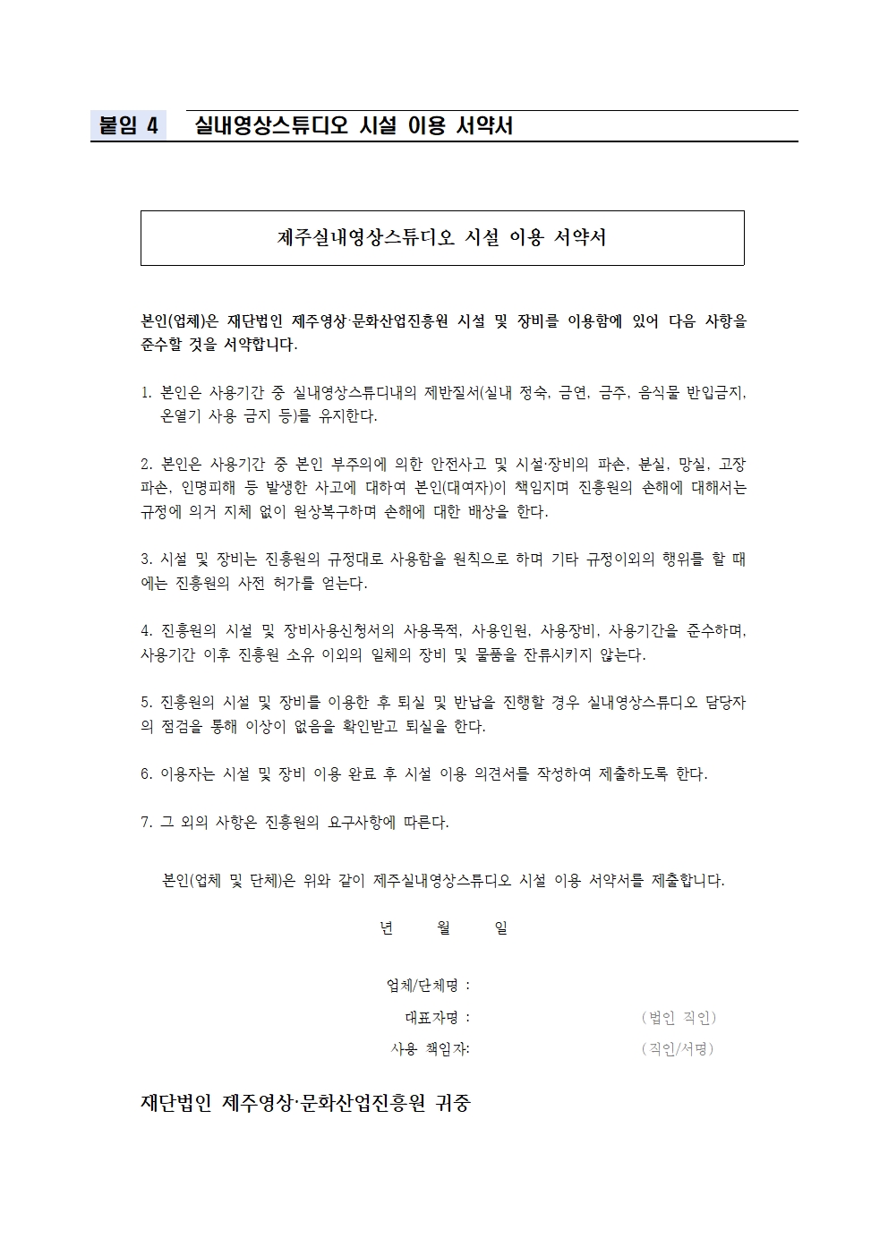 첨부 #5 [별지4] 실내영상스튜디오 시설 이용 서약서.hwp (54 KBytes)