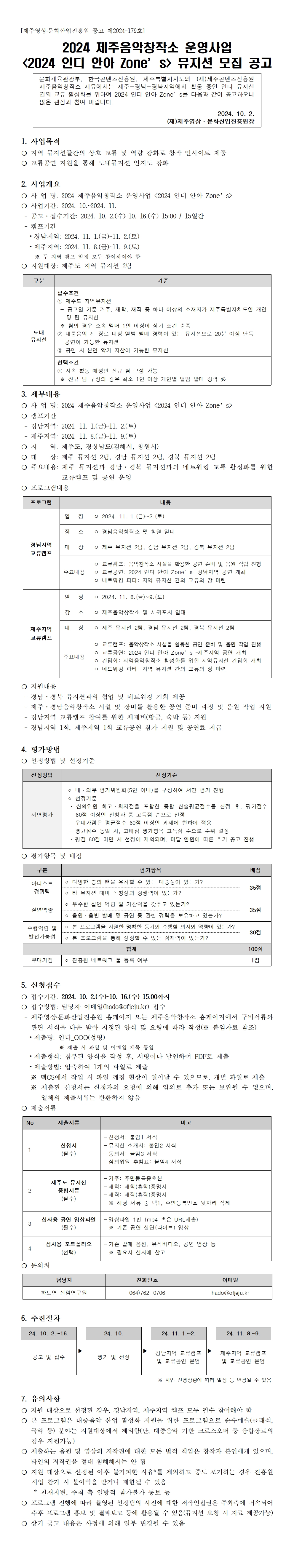 2024 제주음악창작소 운영사업 <2024 인디 안아 Zone's> 뮤지션 모집 공고 게시물 상세보기