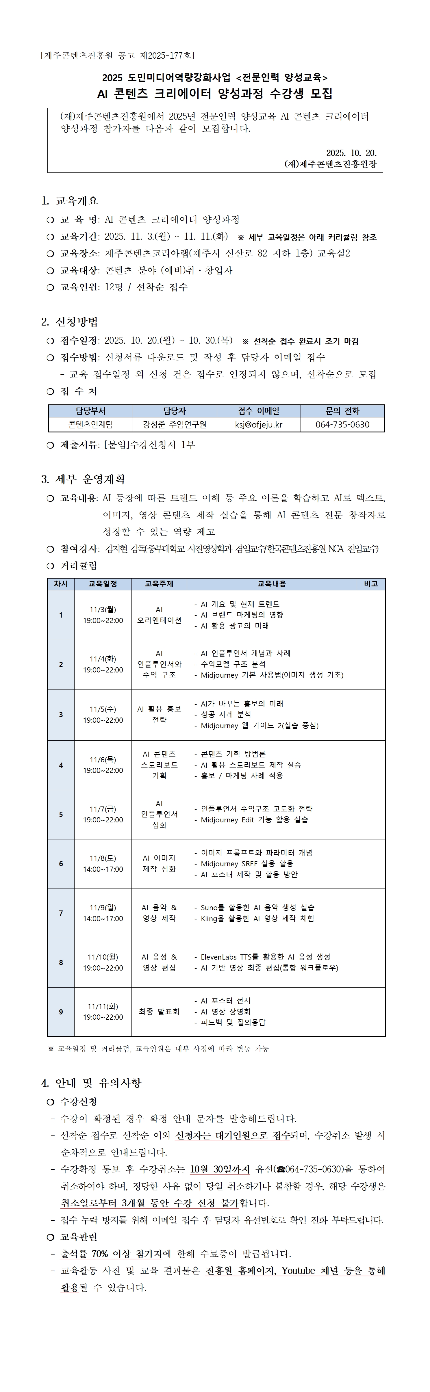 전문인력 양성교육 AI 콘텐츠 크리에이터 양성과정 수강생 모집..