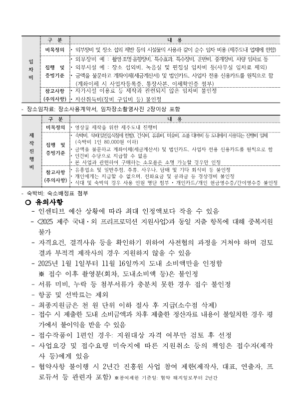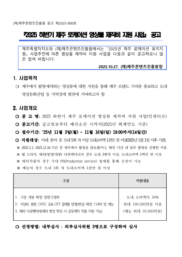 『2025 하반기 제주 로케이션 영상물 제작비 지원 사업』 공고..