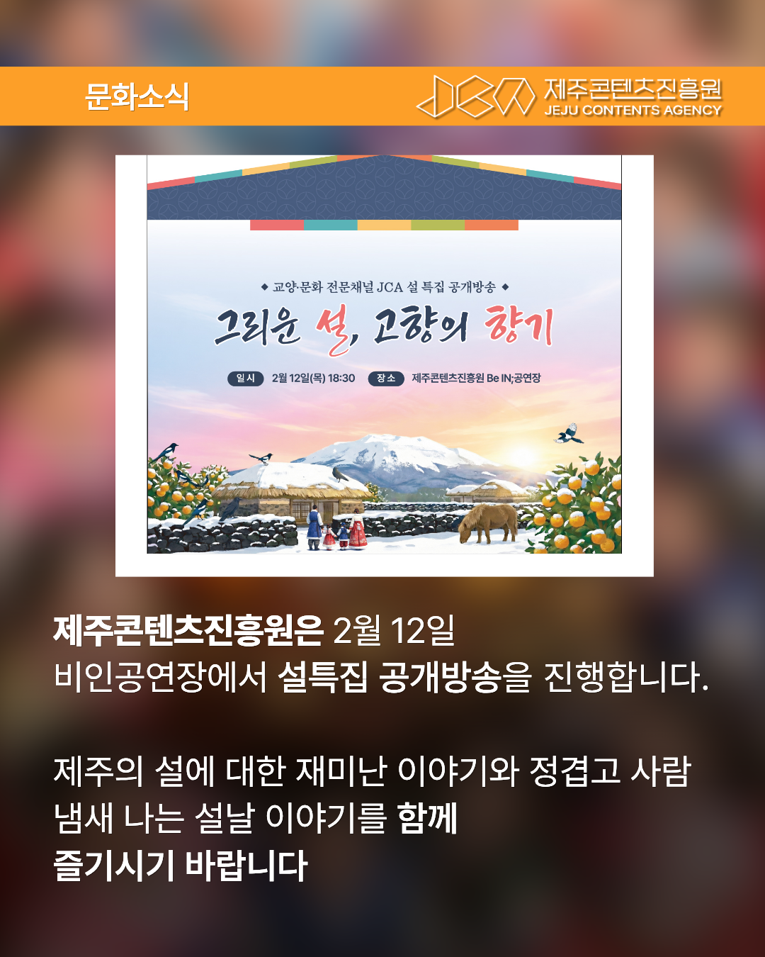[기관공고] 설 특집 공개방송 '그리운 설, 고향의 향기' 참여자 모집
