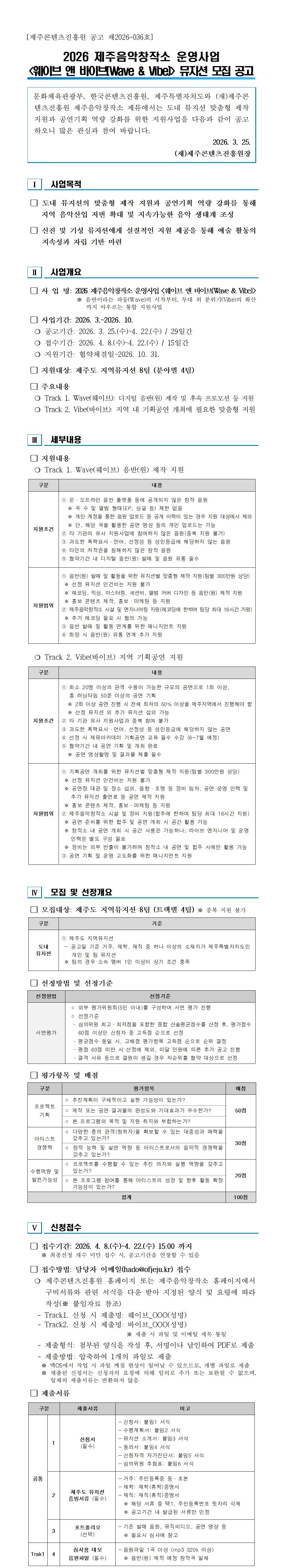 2026 제주음악창작소 운영사업 <웨이브 앤 바이브(Wave & Vibe)> 뮤지션 모집 공고..