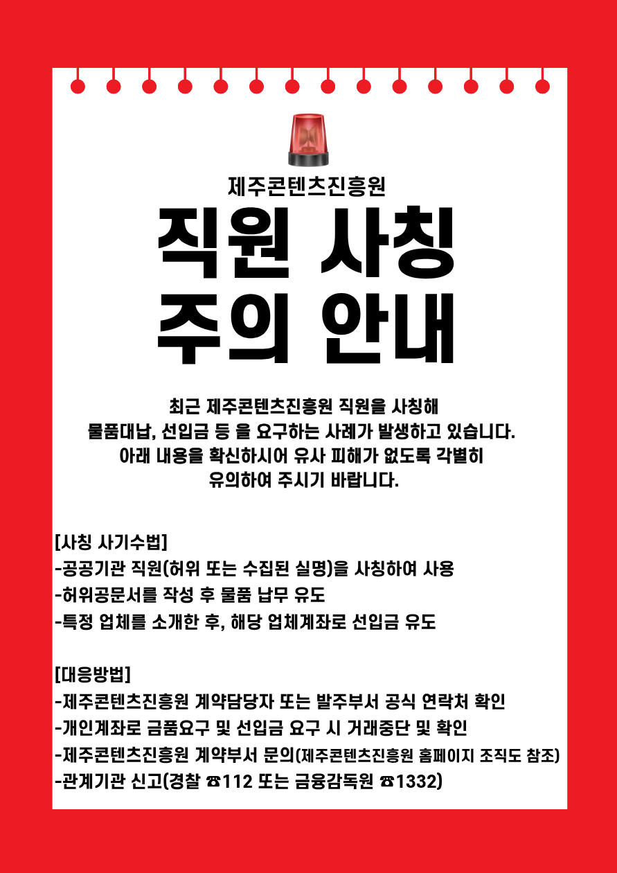 [ ] 제주콘텐츠진흥원 직원 사칭 주의 안내