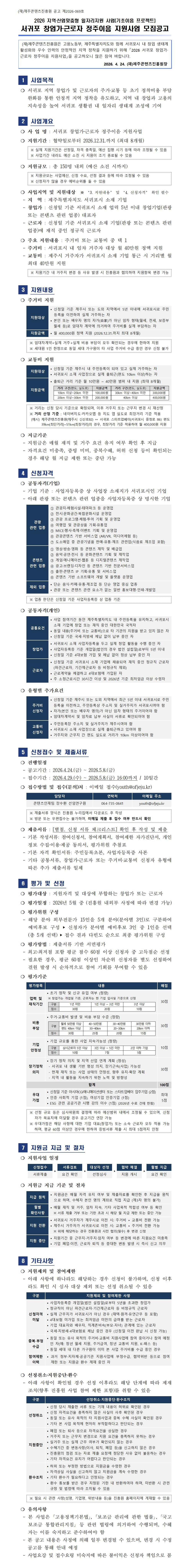 2026 제주 지역특화콘텐츠 개발지원사업 참여기업 모집 재공고..