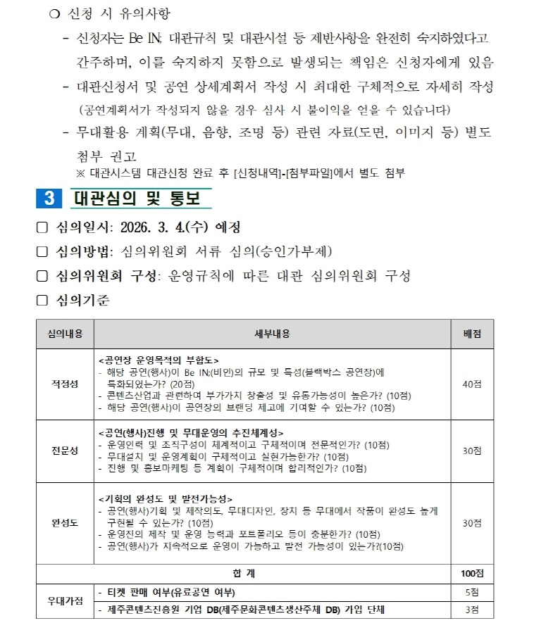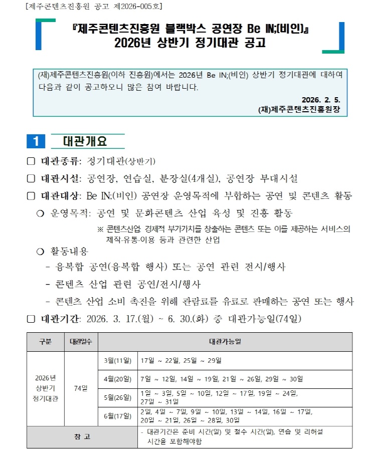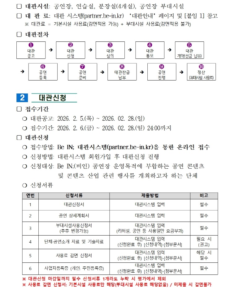 2026년 Be IN;(비인) 상반기 정기대관 공고