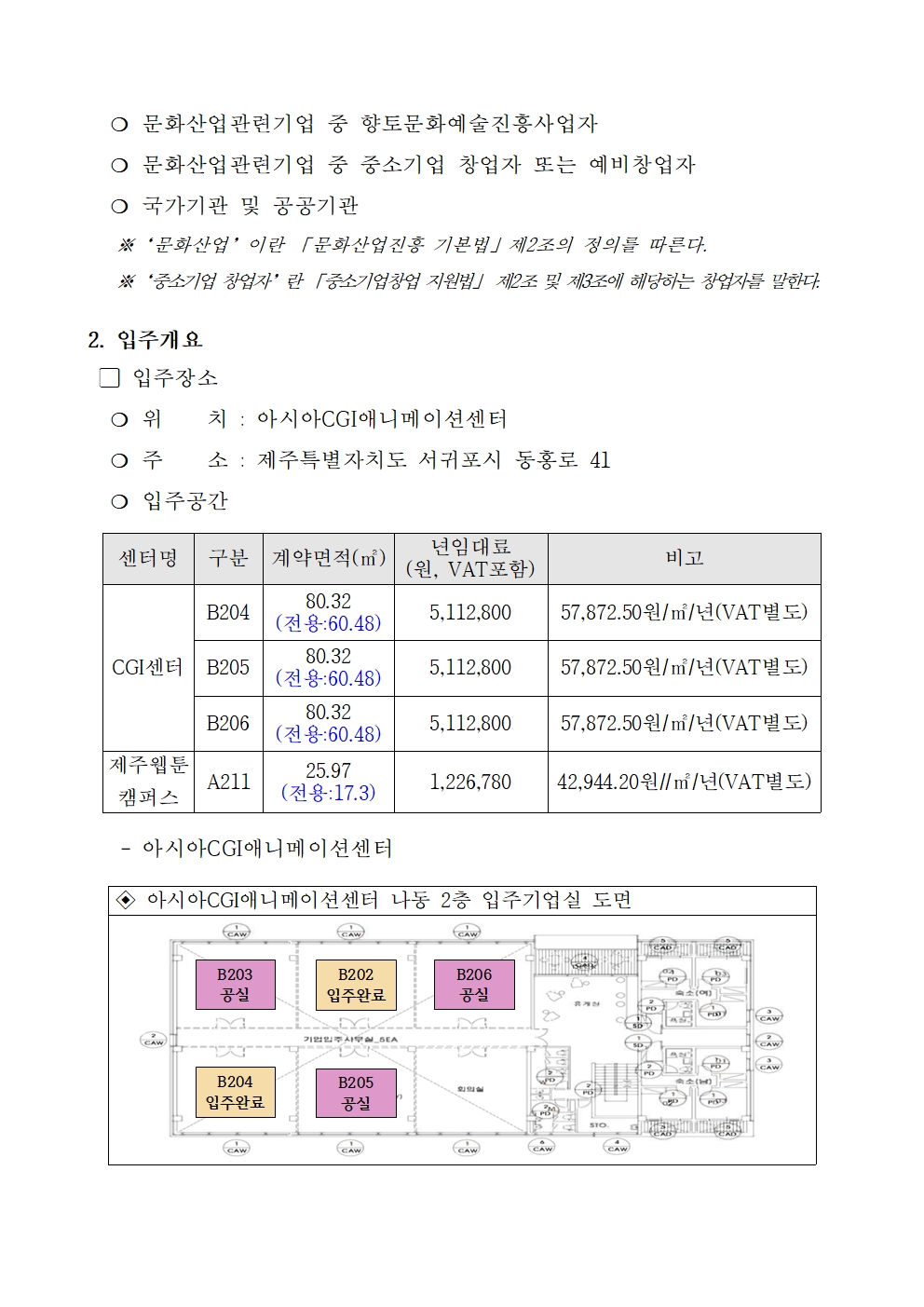 [ ] 2026년 아시아CGI애니메이션센터 및 제주웹툰캠퍼스 입주기업 모집 공고