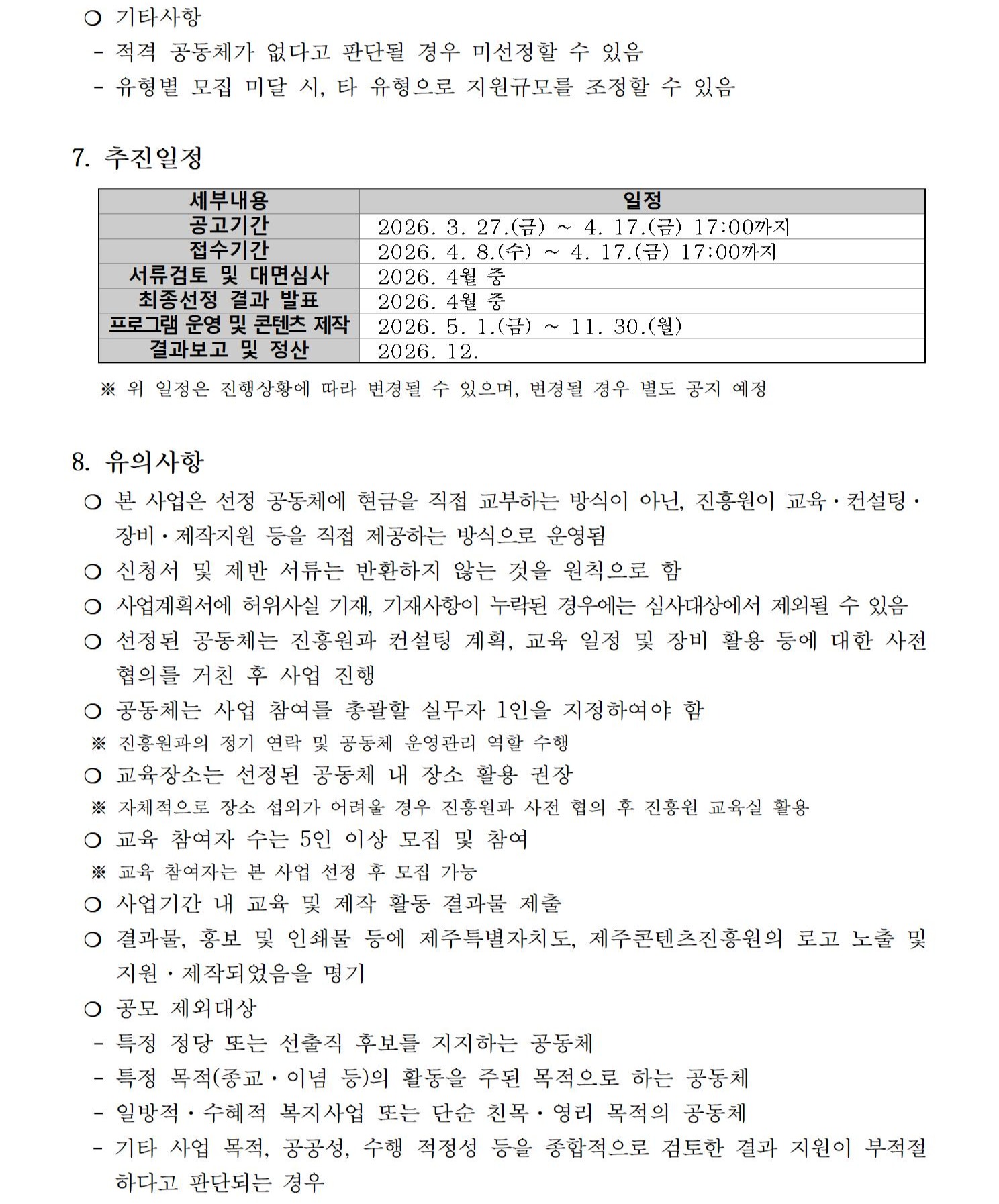 2026 제주다양성영화 제작지원 사업 면접평가 안내 공고 ..