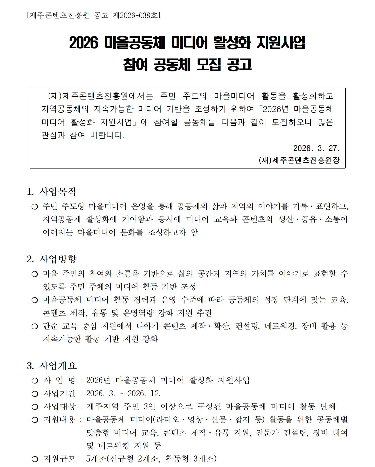 2026 마을공동체 미디어 활성화 지원사업 참여 공동체 모집 공고..
