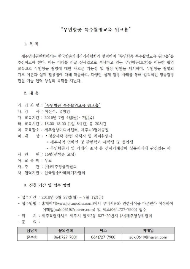 [교육공고] 2019 콘텐츠원캠퍼스 구축운영 지원사업 드론항공 VR촬영 실무과정 참가자..