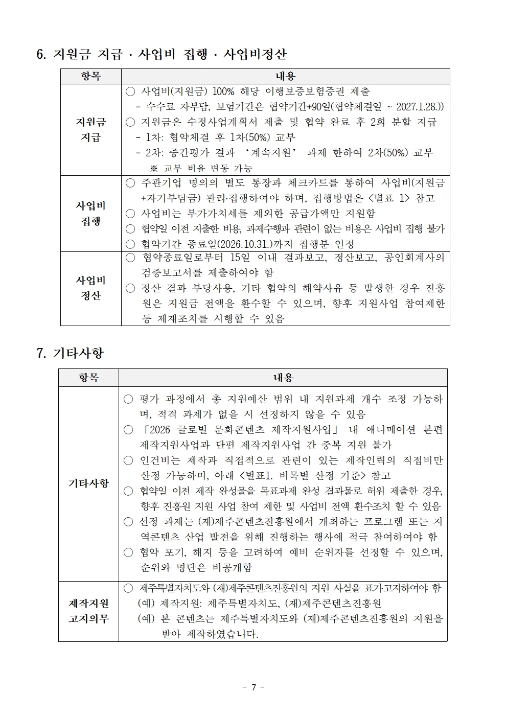 2026 제주 지역특화콘텐츠 개발지원사업 참여기업 모집 재공고..