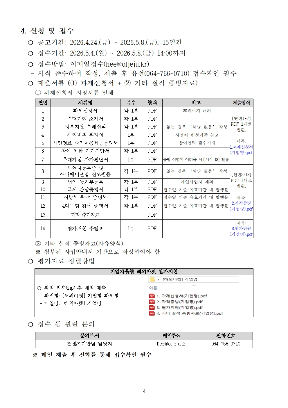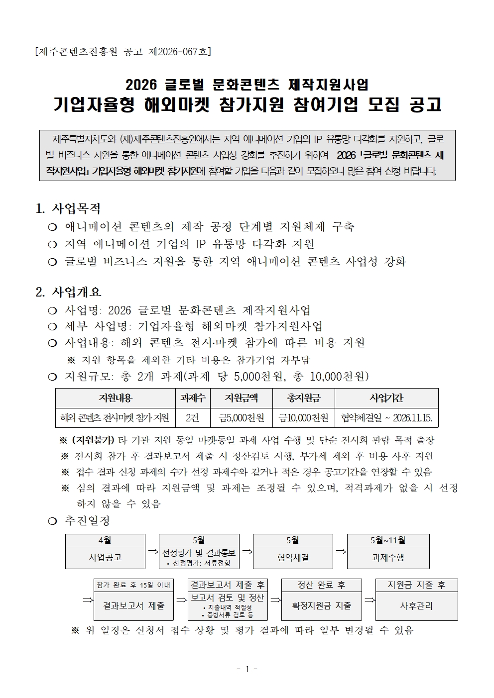 2026 제주 지역특화콘텐츠 개발지원사업 참여기업 모집 재공고..