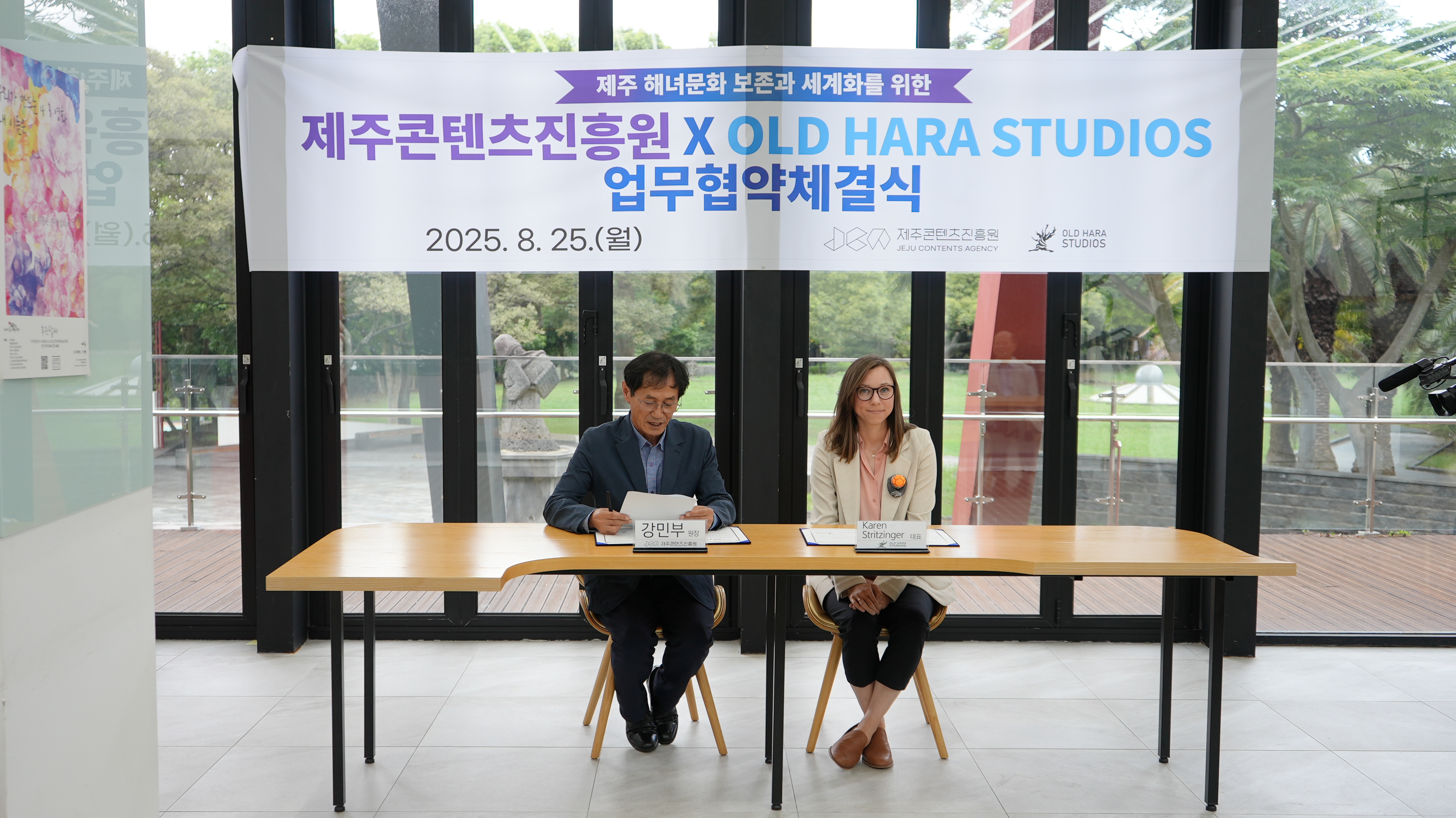 제주콘텐츠진흥원과 올드하라 스튜디오가 제주의 해녀문화를 보존하고 세계에 알리기 위한 업무협약을 체결했습니다.