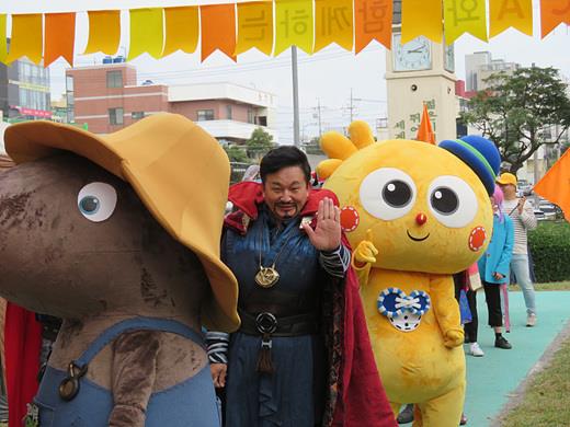 제주 도내 애니메이션 캐릭터들과 함께 한 캐릭터 퍼레이드에는 제주특별자치도 원희룡 도지사님도 코스프레 분장하시고 지역 주민들과 퍼레이드를 즐기시는 모습니다.